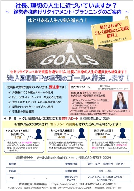 会社とご自身の人生のゴール設定と、そこのまでのお金の最短道筋を